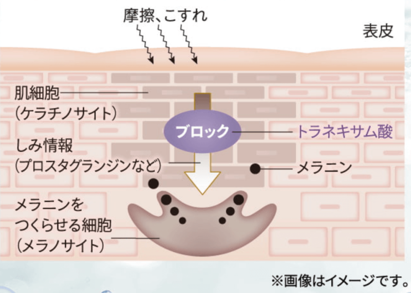 ②トラネキサム酸・グリチルリチン酸2Kの有効成分をダブルで配合している