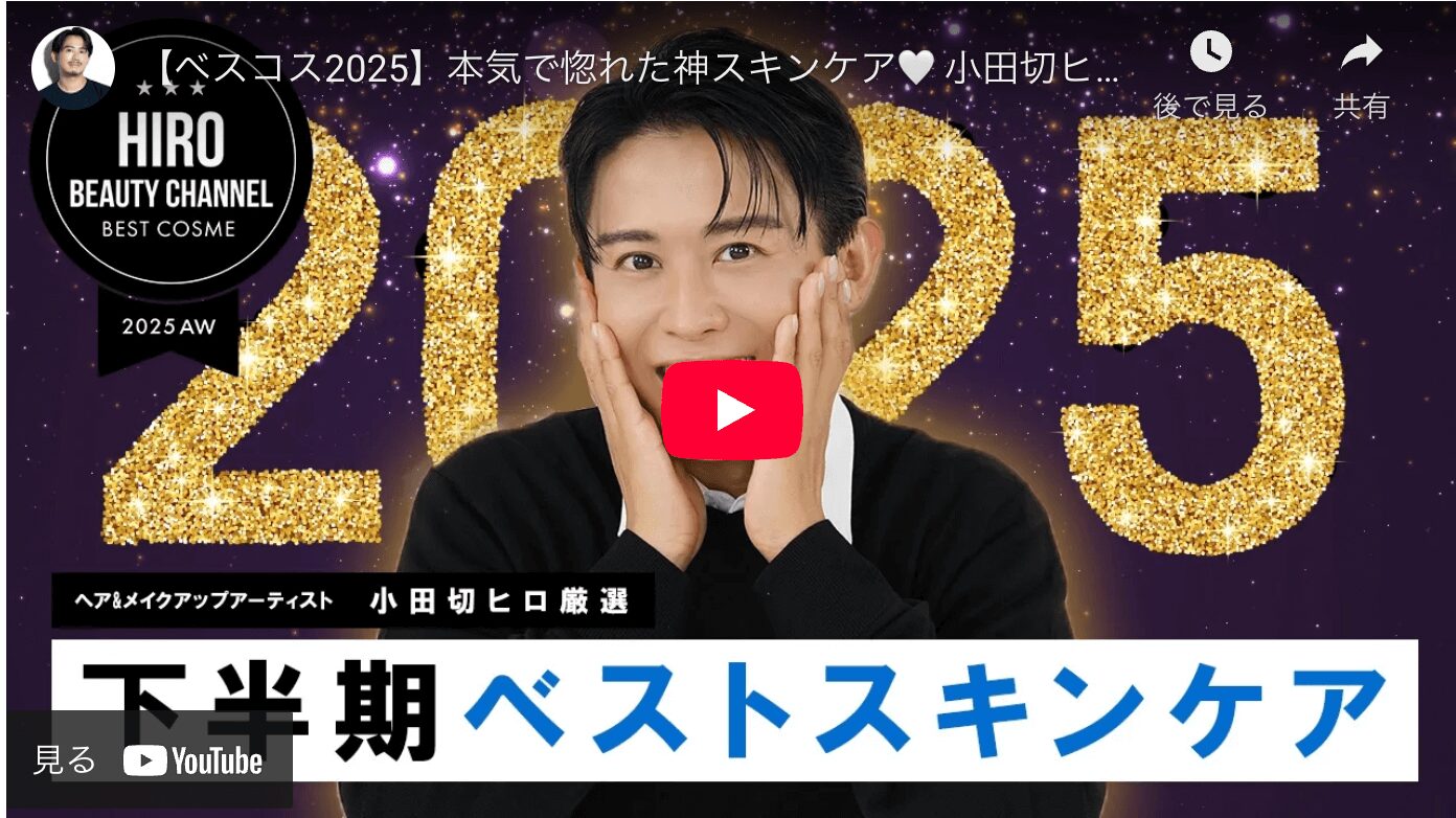 小田切ヒロさんがYoutubeで『【ベスコス2025】本気で惚れた神スキンケア🤍 小田切ヒロが厳選した2025年下半期ベストスキンケアの発表よ〜🤍』という動画を公開していました😋