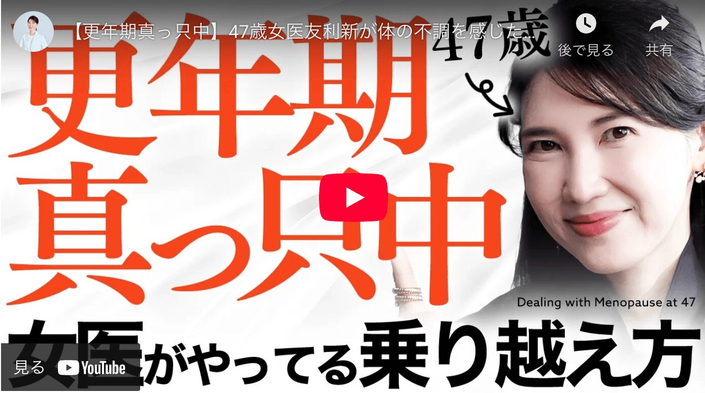 友利新さんがYoutubeチャンネルで『【更年期真っ只中】47歳女医友利新が体の不調を感じた時の対処や乗り越え方を教えます!』という動画を公開していました😋